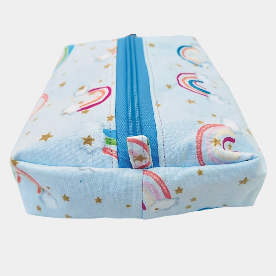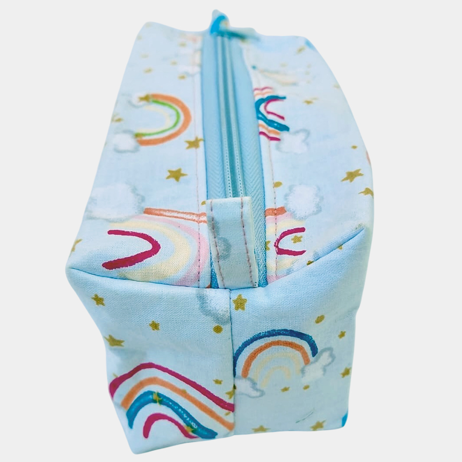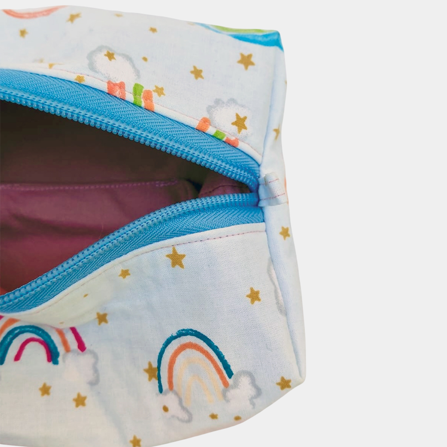 A cute, structured zip pouch with a playful boxy shape — perfect for keeping small things organised with a touch of whimsy.